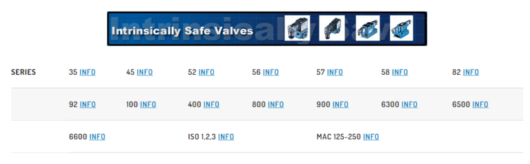 1100 Series – Mechanical operated, manual operator levers, push buttons, cams and remote air versions. 2 or 3 way configuration